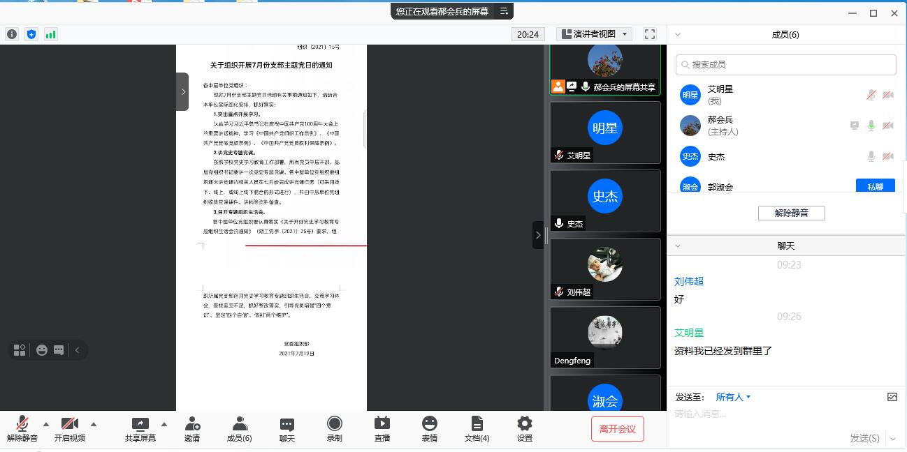 7月15日、16日,beat365在线唯一官网教工一支部、教工二支部分别以腾讯会议的形式开展“支部书记讲党史专题党课”暨7月份支部主题党日活动,教工一支部书记潘保国、教工二支部书记郝会兵分别为支部党员讲党史学习教育专题党课。