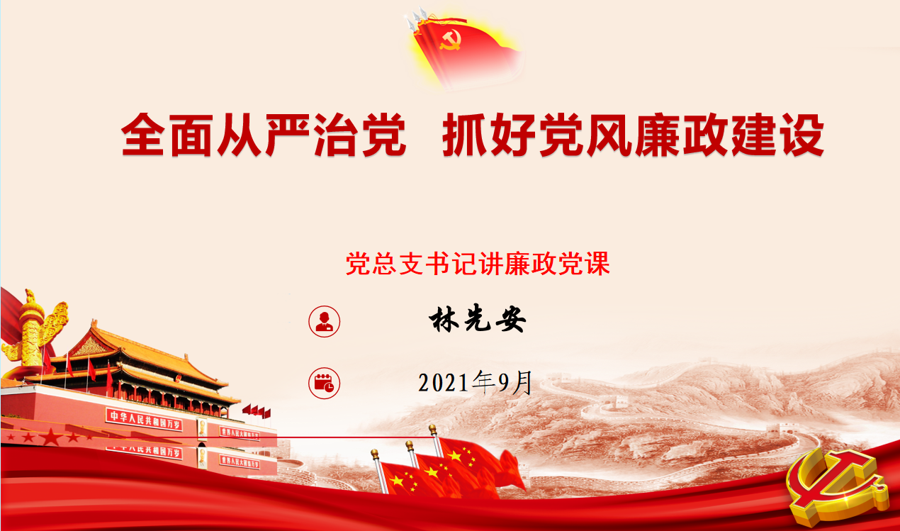 根据学校2021年党风廉政建设宣教月活动安排,2021年9月17日,beat365在线唯一官网党总支书记林先安同志在三楼会议室为全院党员及领导干部讲廉政党课,会议由院长胡付高主持。