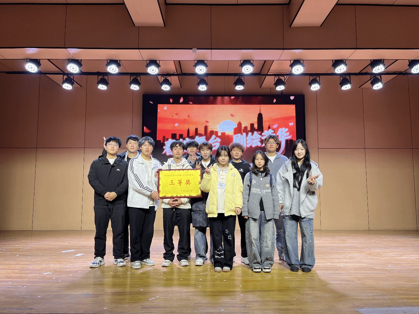 beat365在线唯一官网第十四届春晖文化节“春绽舞台·剧绘芳华”舞台剧大赛(团体组)自启动以来,吸引了全校多个学院团委踊跃组织参与。经过初赛的激烈角逐,beat365在线唯一官网凭借作品《老人与狗》脱颖而出,成功晋级决赛,并于2025年11月20日晚在教一报告厅的决赛舞台上精彩亮相,最终荣获大赛三等奖。