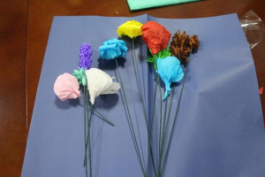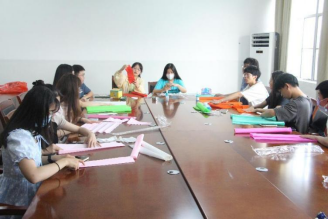 活动现场,各部门的部长和干事分工合作,特邀文学院学姐来现场进行手把手教学,然后大家自行分组合作折纸花,进行小比赛,选出优秀作品。