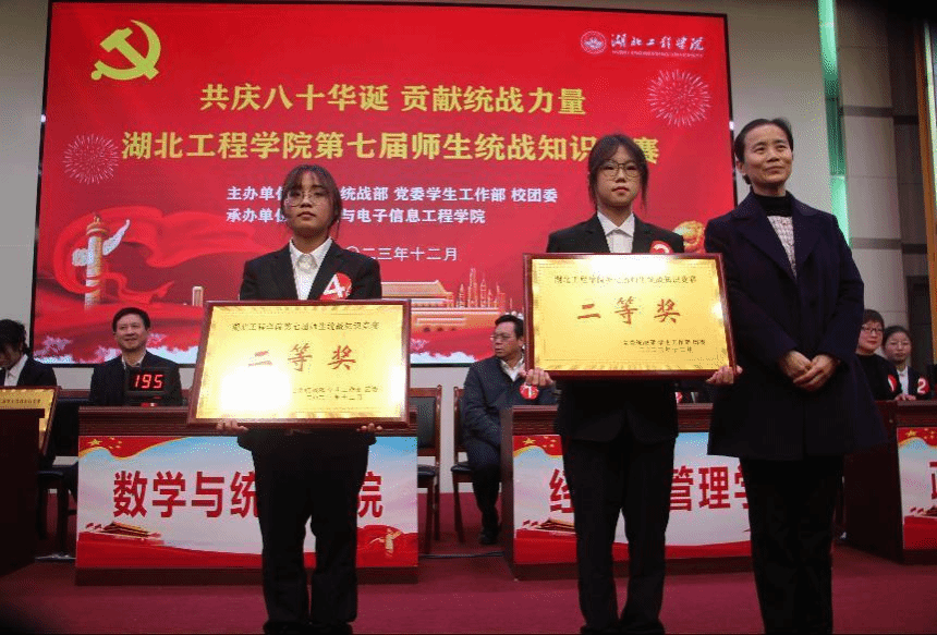 数统学院参赛队在分组比赛中以小组第一进入决赛,代表队成员分别是胡付高老师、王桂婷、汤群以及石佳雪三位同学。他们在决赛中展现出了良好的精神风貌和专业素养,凭借扎实的专业知识,准确、迅速地回答了比赛题目,赢得了评委和观众的一致好评。经过激烈的角逐,beat365代表队凭借扎实的专业知识和出色的团队协作,成功获得了二等奖的优异成绩,党委书记卢雪梅为beat365选手颁奖。