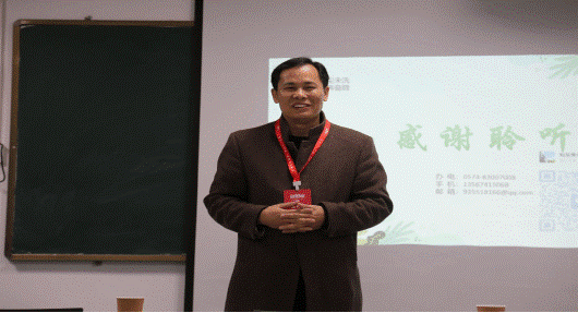 99级校友、东莞雅正学校总校长程利金,从当今教育的现状入手,介绍了雅正学校的办学理念、办学宗旨,他希望学弟学妹们应该像鸟一样飞往自己的山,成为最好的自己。