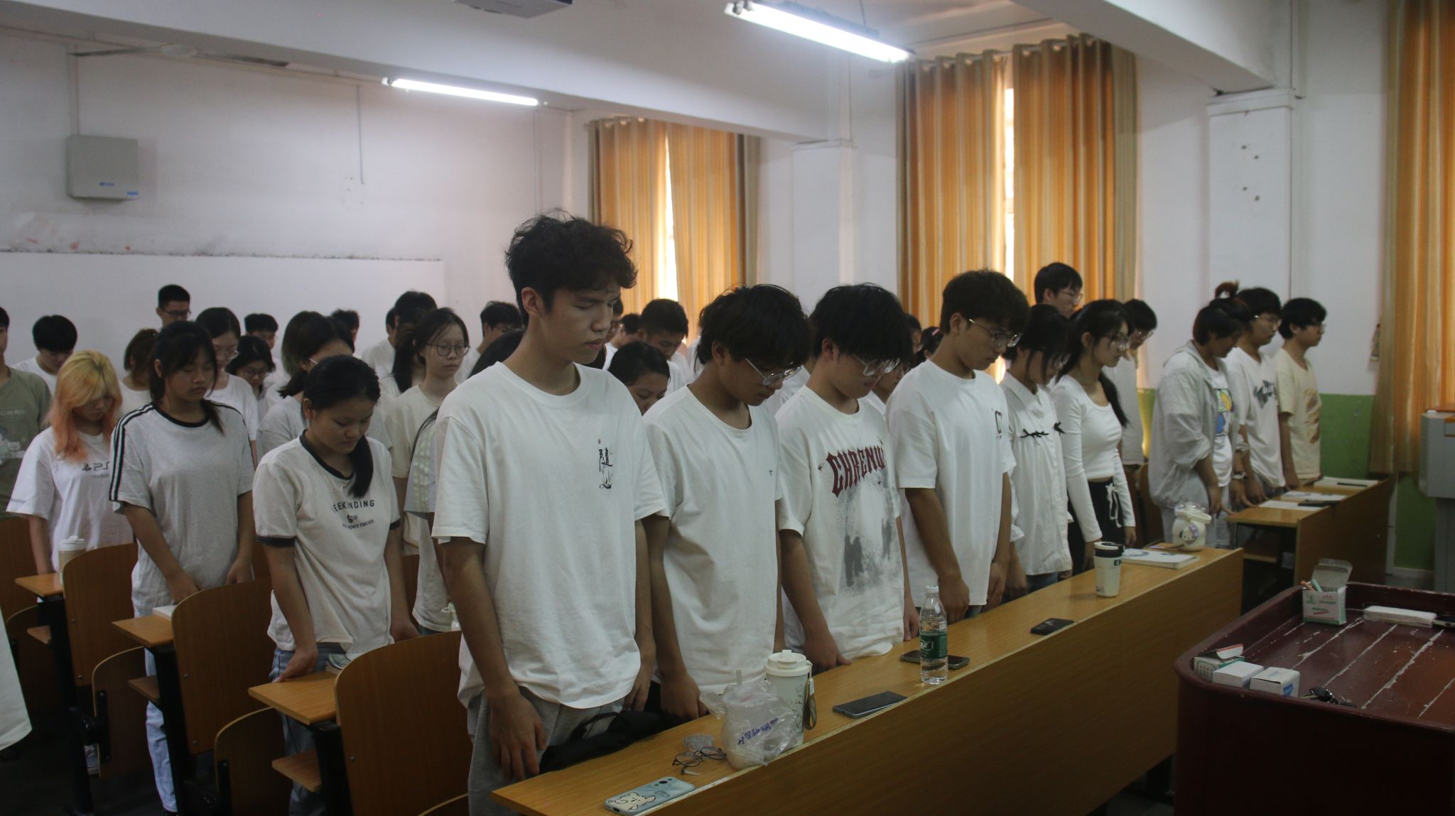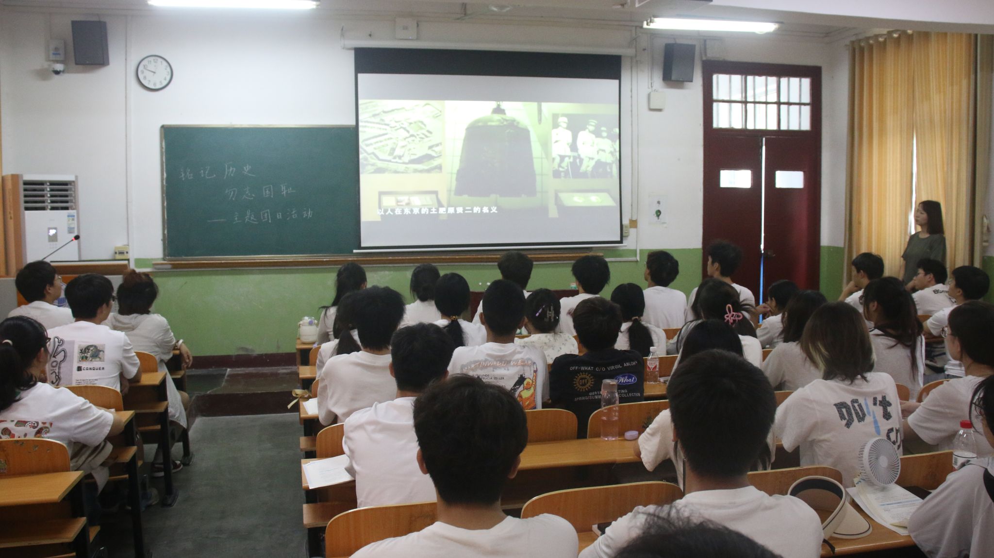 上午10点,随着防空警报声响起,师生肃穆而立,低头默哀。随后,院团委书记郑放老师通过播放视频、讲历史故事等形式,向同学们介绍了“九一八”事变的经过,带领大家回顾了那段屈辱悲惨的历史,重温了抗日战争的峥嵘岁月。