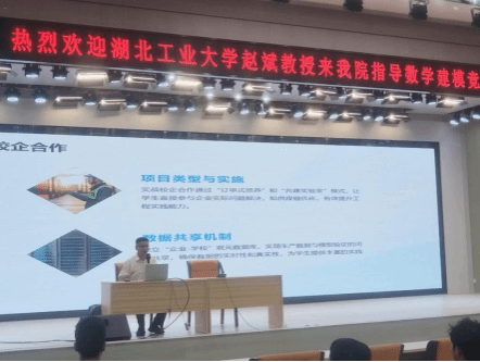 当日下午14时,在美术楼报告厅,赵斌教授为beat365师生带来了一场主题为“创新人才培养及国赛准备”的数学建模专题报告。此次报告由副院长朱三元主持致辞及介绍。朱院长首先对赵斌教授的到来表示了热烈的欢迎,并简要介绍了赵教授在数学建模领域的杰出成就与贡献。
