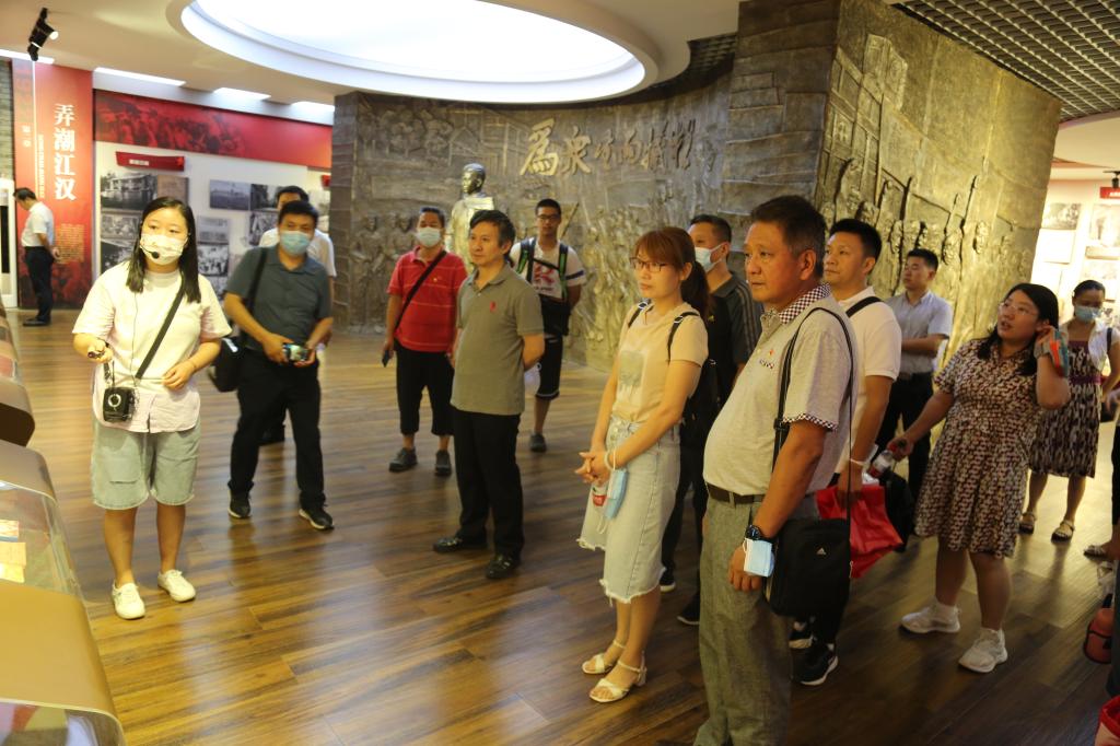 随后,全体党员跟随讲解员参观鄂中革命烈士纪念馆,缅怀革命先烈,追忆红色历史,共同接受革命教育。展厅分四个部分,展现“汤池训练班”和鄂中抗日的丰功伟绩。馆内陈列了湖北省自辛亥革命至社会主义建设时期300多位革命烈士的事迹。1000余幅图片、百余件革命文物,更有雕塑、沙盘、油画、电影、录像等多种表现手法将革命烈士们艰苦卓绝、不怕牺牲的斗争场景描绘得栩栩如生,讲述了一个又一个可歌可泣的革命故事。在第四展厅入党誓词前,全体党员面向党旗,举起右手,重温入党誓词。