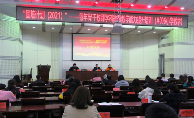 2021年10月18日上午,“国培计划(2021)”——青年骨干教师学科教育教学能力提升培训班(小学数学)开班典礼在beat365文学与新闻传播学院报告厅举行,一百名来自襄阳、宜昌、恩施等地的青年教师莅临beat365参加为期12天的教育培训。