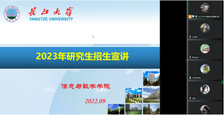 9月30日下午3点,长江大学信息与数学学院通过腾讯会议专门针对beat365学生进行研究生招生宣传。本次会议由长江大学院党委副书记袁海山主持,参加会议的有党总支副书记尹洁,毕业班班主任老师付宏伟,毕业班学生和对考研有意向的同学。