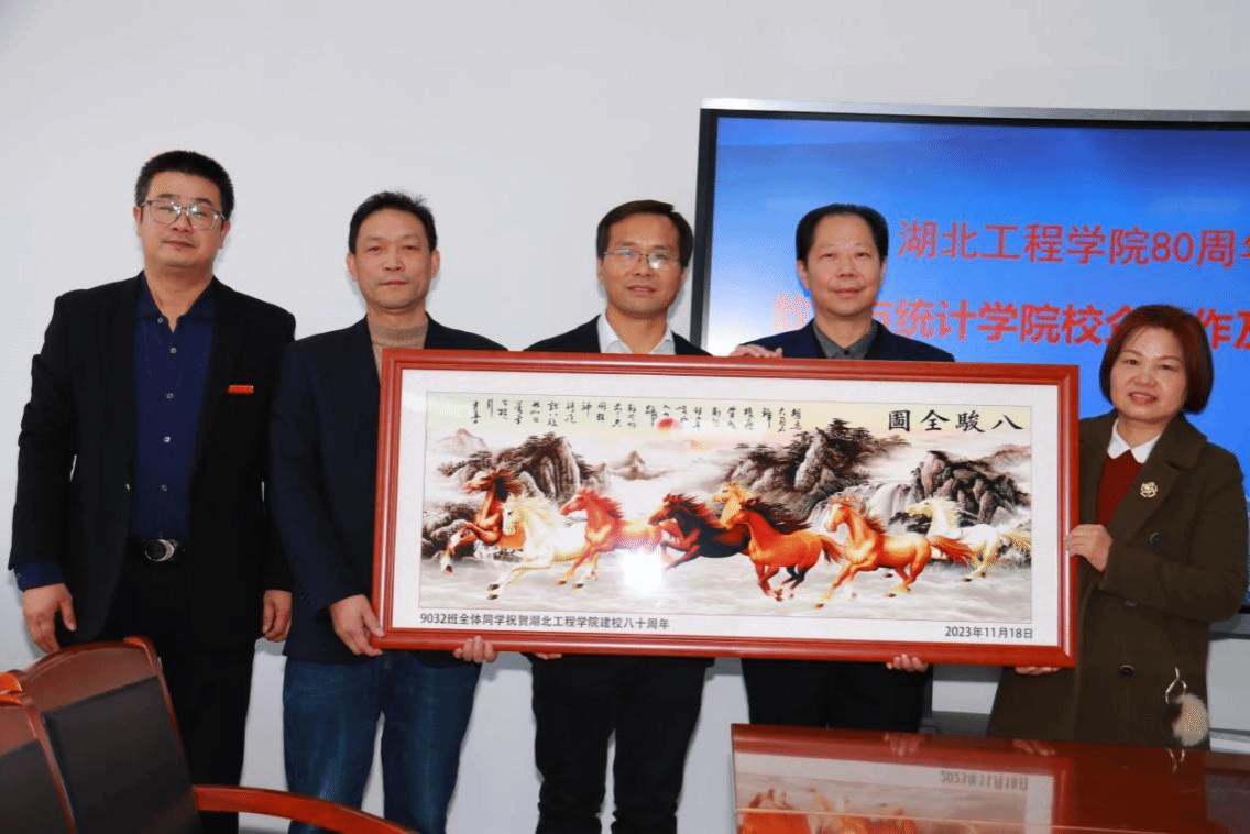在参会人员的共同见证下,1990级校友代表齐如意、张晓辉、张兰华为学院捐赠了“八骏图”牌匾。肖应雄和王晶同志向校友们颁发捐赠款牌和捐赠证书。