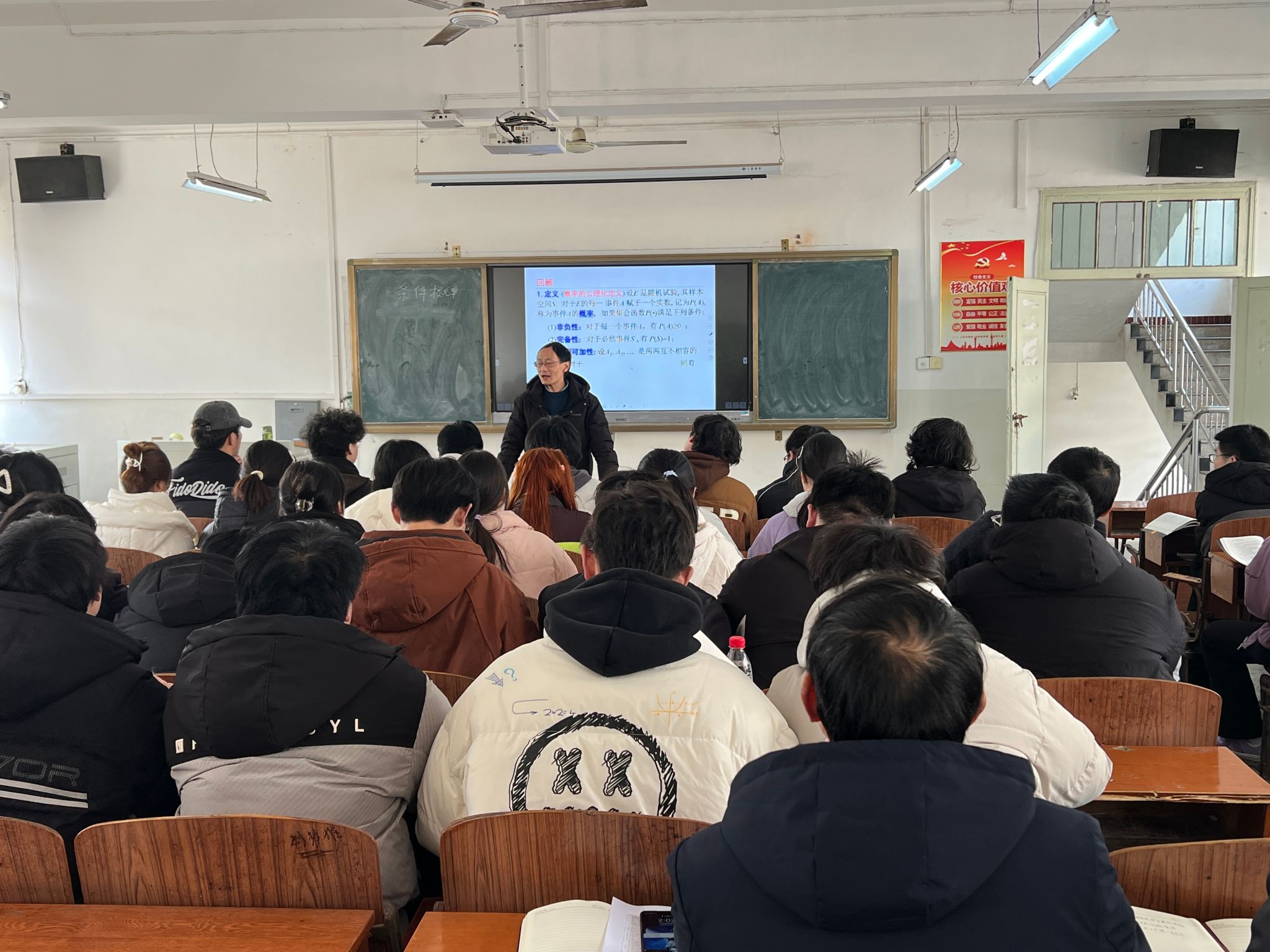 纪光友博士本次授课内容为条件概率。课堂上,他以清晰的逻辑和生动的案例,深入浅出地讲解了条件概率的概念、计算方法及其在实际生活中的应用,极大地激发了学生们的学习兴趣和积极性。在讲解过程中,纪光友博士不断引导学生思考和讨论,培养了学生的创新思维和解决问题的能力。在课堂上,学生们全神贯注地听讲,积极参与课堂互动,展现了良好的学习风貌。