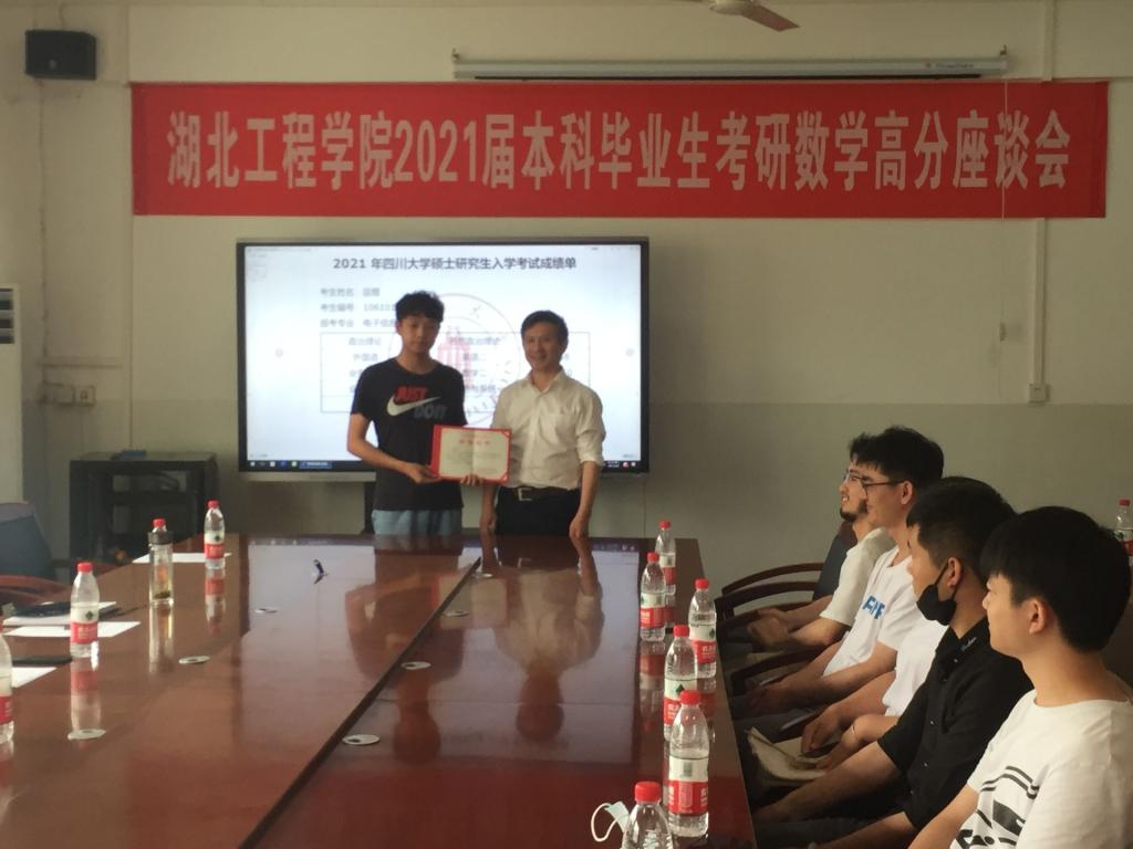 座谈会后,学校给在2021年研究生考试中取得满分的匡煜同学颁发了“天慧奖学金”。