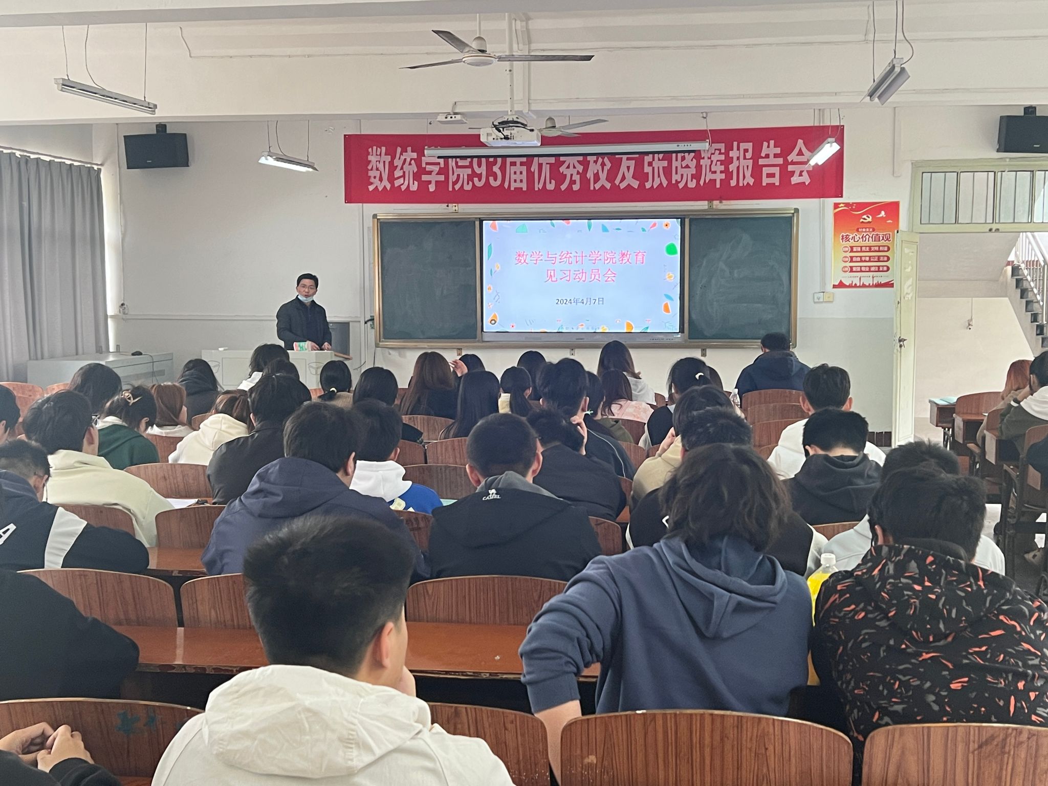 为引导学生做好见习前的各项准备工作,保证见习工作的顺利进行,数统学院4月7日在211教室召开2022级数学与应用数学专业见习动员大会。会上吕主任介绍了本次见习的相关内容和要求。潘院长鼓励学生把握好见习机会,通过多观察、多交流、多互动、多思考,深入了解中学的真实情况,进一步提升个人的专业认知、专业知识和实践技能。
