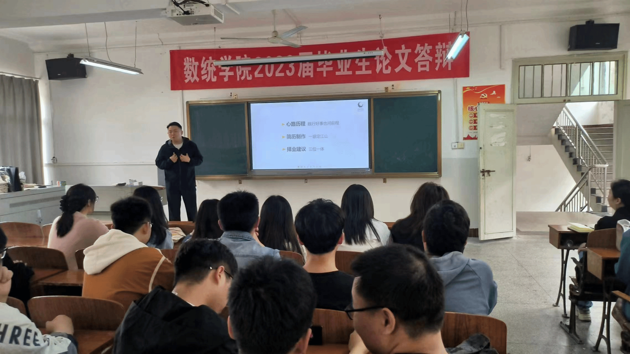为进一步提升毕业生就业质量,3月22日下午,数统学院在教六211教室举办星火教育专场招聘会。会议由广东星火教育东莞校区校招主管周韩熠校友主讲,学院党委副书记尹洁、辅导员马灵通、毕业班班主任和2024届毕业生参加。