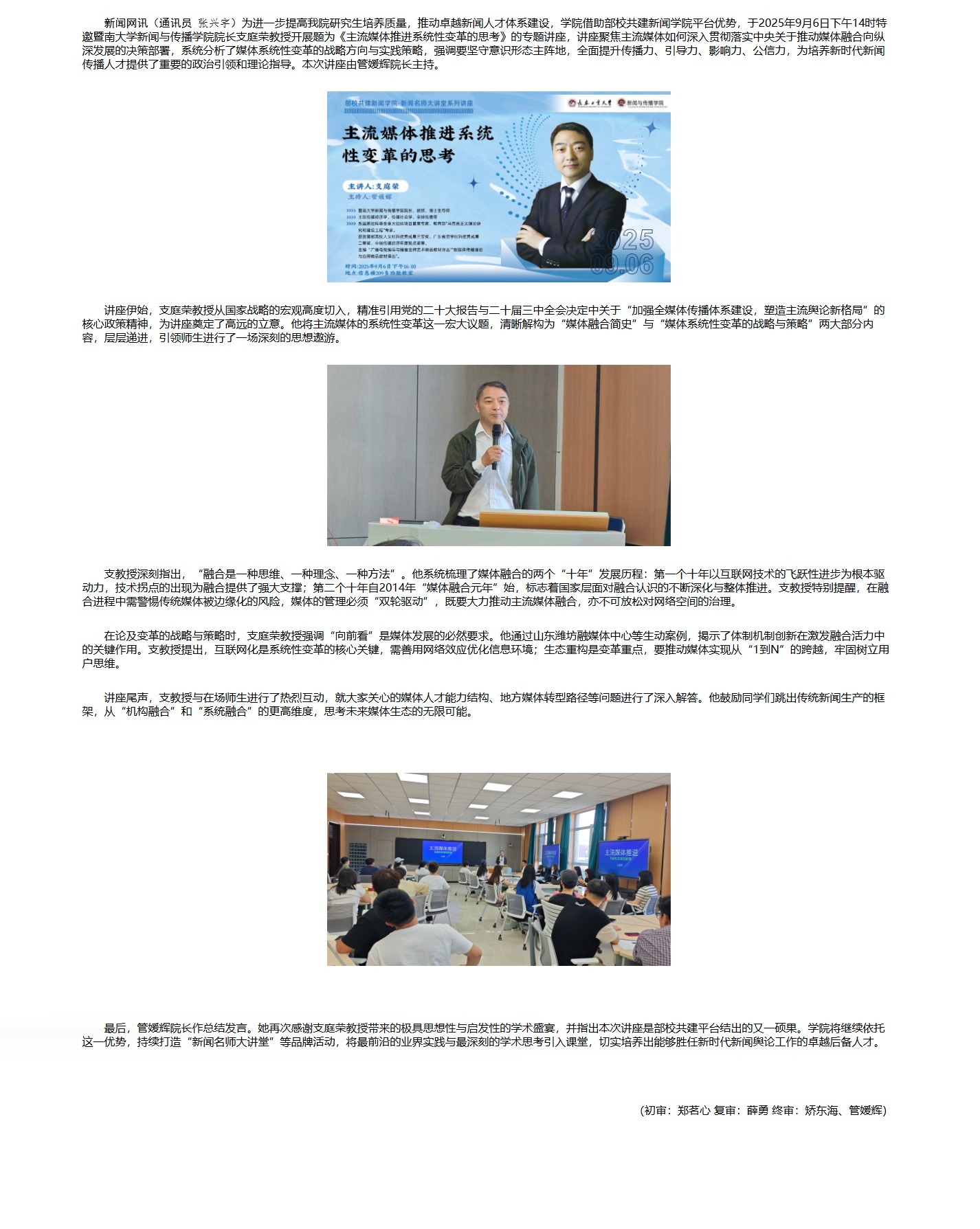 澳门十大信誉网赌大全 部校共建新闻学院——新闻名师大讲堂系列讲座《主流媒体推进系统性变革的思考》