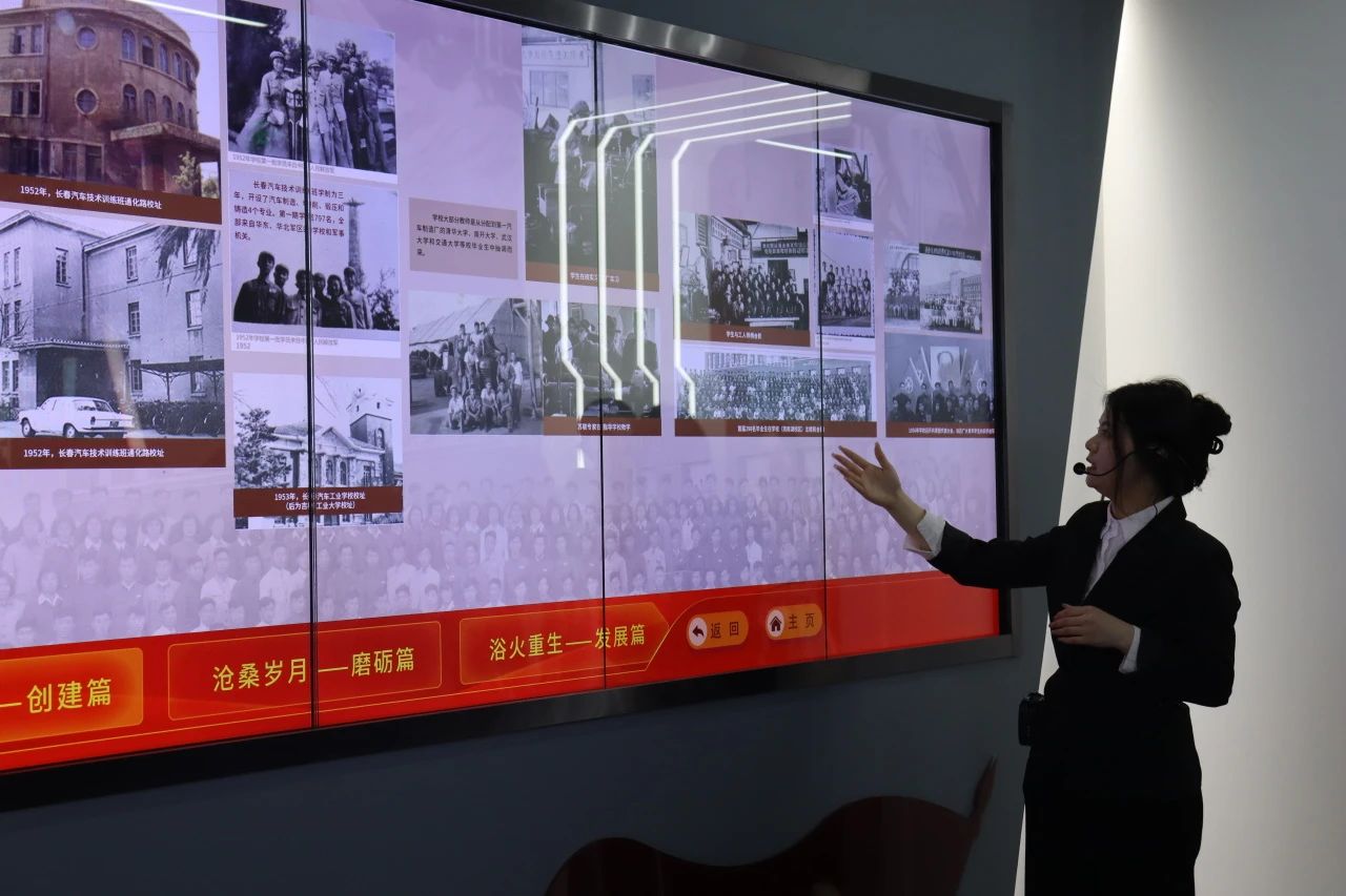 电讲解员李阳洋向在场同学们生动讲述了长春工大从新中国汽车工业人才的摇篮向现代综合性高等学府的演变历程,带领大家跨越时空,重温工大这不平凡的七十余年。校史馆里,一幅幅照片、一段段文字、一件件实物展品,李阳洋讲解员通过五大板块,带领同学们领略了长春工大七十年来的风云变幻,引发了同学们全新的体验与感悟。澳门十大信誉网赌大全的风采深深地吸引了同学们,同学们从校史馆中了解到了长春的汽车发展史,也对这座久经沧桑的大学有了更加深刻的了解。同学们感慨学校伟大的光荣历史、惊喜技术创新带来的全新体验、自豪前辈们做出的非凡成就。