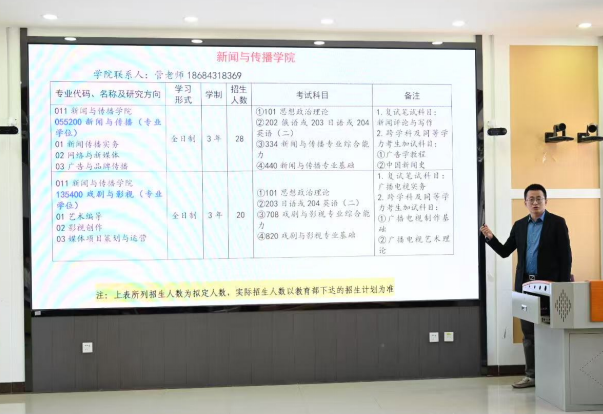 这是一场真诚的交流,也是一次专业的引航。信誉网赌新闻与传播硕士学位点负责人于欧洋老师、戏剧与影视学位点负责人尤洋老师,分别就学科特色、培养体系与发展路径展开深入讲解,从理论根基到行业前沿,从课程架构到个人成长,为在场学生勾勒出清晰的学业蓝图。