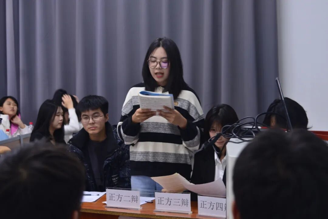 通过初赛的激烈角逐,最终有四支队伍进入复赛。在复赛中,辩手们展现了敏锐的逻辑思维与临场反应速度,他们犀利且条理分明的质询直击要害,让人感受到了他们的思辨深度与竞技韧性。