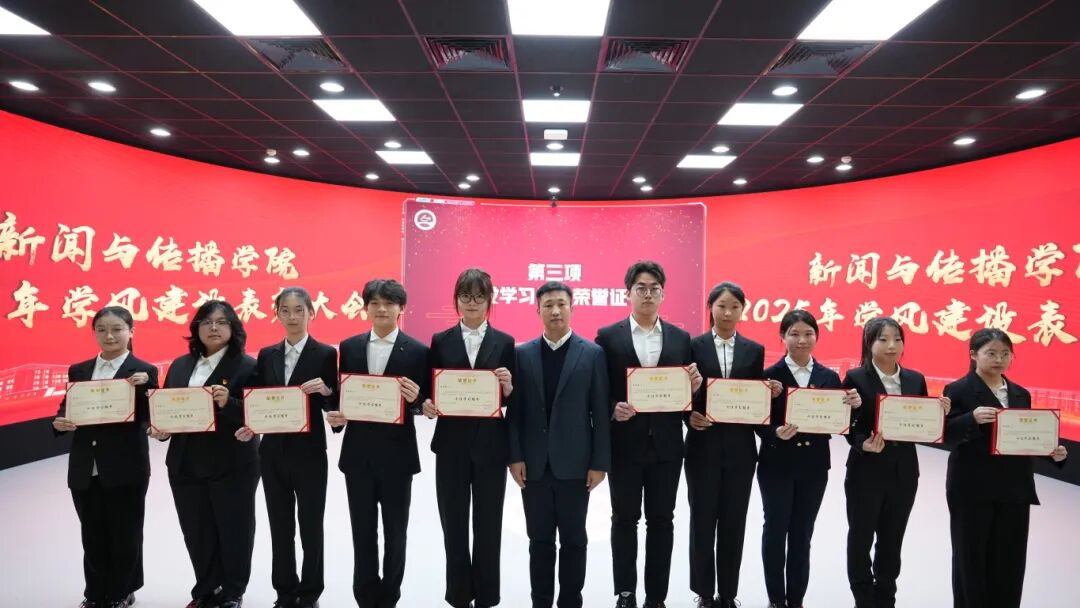 本次表彰大会不仅是对过去一年学风建设成果的集中展示,更是学院落实立德树人根本任务、培育时代新人的重要体现。获奖集体与个人以实际行动诠释了“勤奋求实,笃学创新”的学风精神,为全院树立了榜样。荣誉属于过往,奋进开创未来。学院将持续强化学风建设,优化育人环境,激励全体师生携手奋进,共同书写新传学院学风建设新篇章,为培养优秀传媒人才、服务教育强国建设贡献力量!